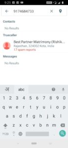 मैंने पूछा आप उस गांव में कहा रहती हैं ? हमें परिवार समेत लड़की को देखने आना है। जबाब में आया के हम पुलिस थाने के पास रहते है। और यही उनकी भूल थी। क्यू के उस गांव में पुलिस थाना है ही नहीं। और जानना चाहा तो मुझे जबाब मिला लड़की अभी पड़ोस में गयी है उसके घर आते ही आपसे बात करती हु दुबारा। मैंने लोकेशन शेयर करने को कहा तो जबाब आया लड़की के आतेही आपको लोकेशन शेयर करेंगे मुझे मोबाईल की ज्यादा जानकारी नहीं है। मैंने और जानकारी जुटाने के लिए कहा आपका यह नंबर आपके नाम पर रजिस्टर है ,लड़की की माँ का जबाब आया हां दो महीने पहलेही लिया है ,पर ट्रू कॉलर पर नाम गलत बता रहा होगा। उनकी इस जानकारी ने मुझे हैरानी में दाल दिया है। तब से वह नंबर बंद है। अब पक्का यकींन हो गया था कल ब्यूरो का ऑफिस खुलेगा तो यह काम करने लगेगा। लड़की की माँ के नाम से मुझे दिया गया मोबाइल नंबर 9067786336 यह नंबर भी किसी और के नाम से रजिस्टर है। यह सब मैं पूरी जिम्मेदारी के साथ सार्वजनिक कर रहा हु। क्यू के यह कंपनी लोगो को धोखा देनेका काम कर रही है। मैंने जो स्क्रीन शॉट दिए है जिसे एडिट नहीं किया जा सकता।